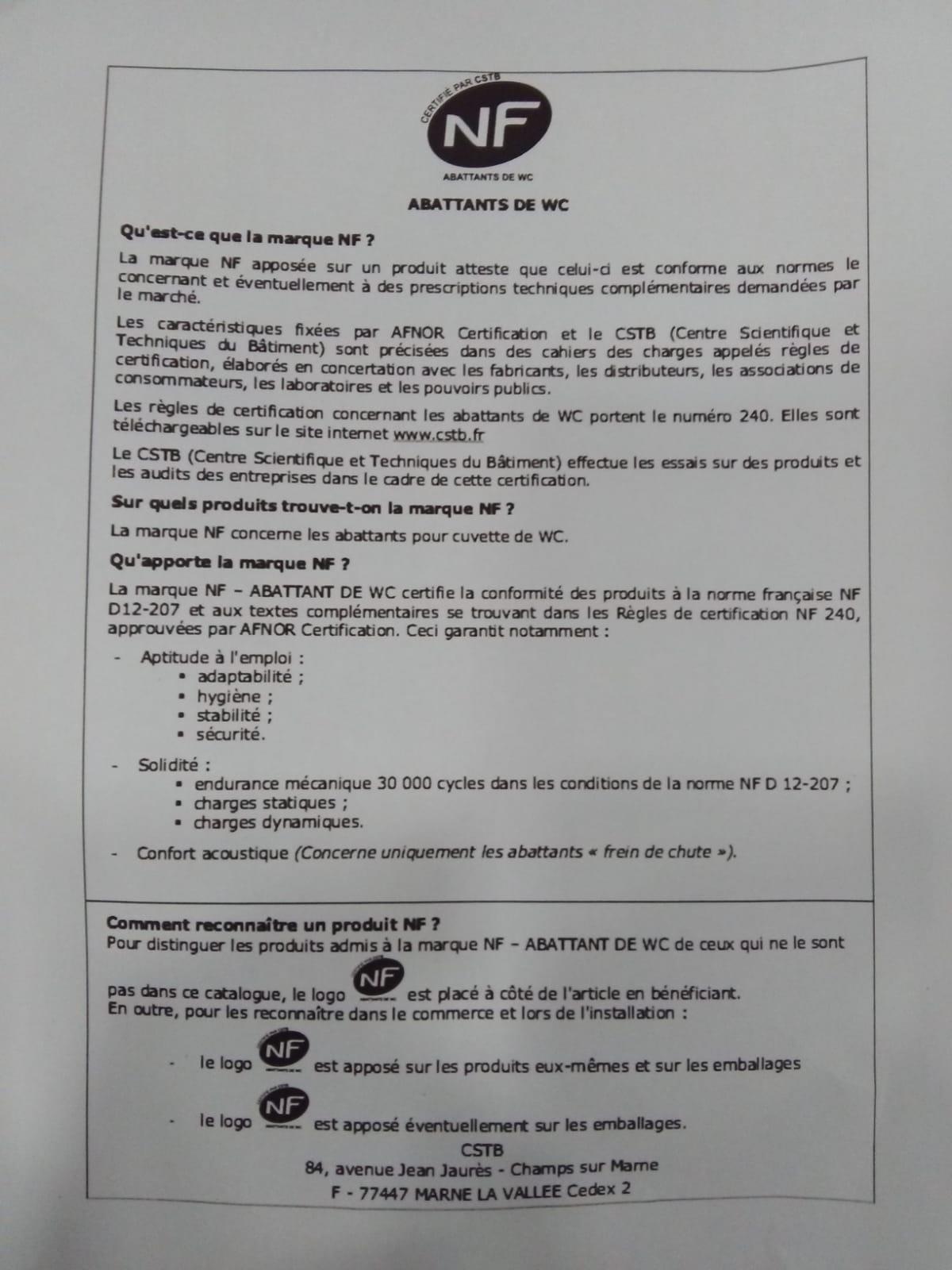 Ocean Klozet Kapağı CSTB Tarafından Sertifikalıdır.