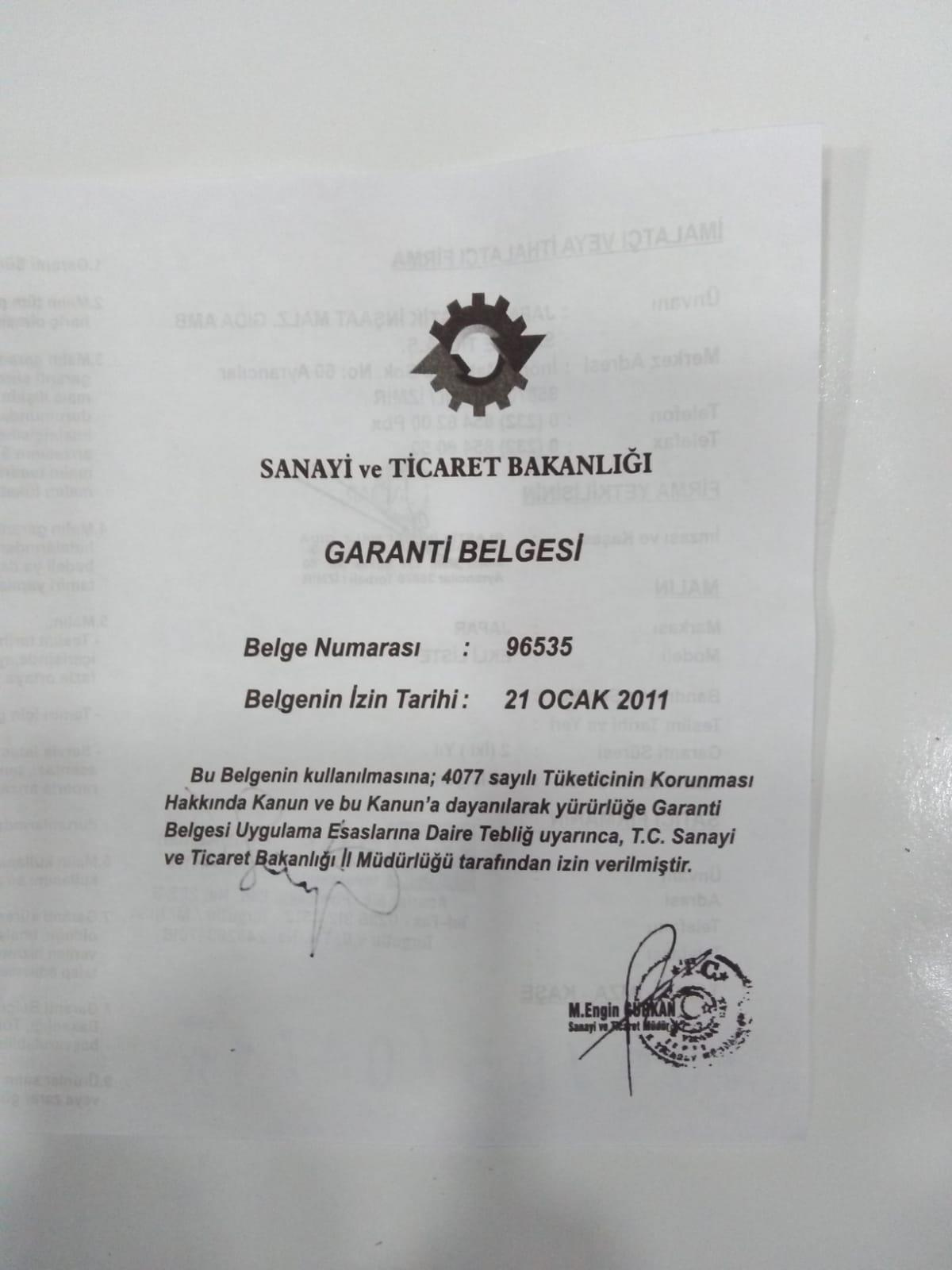 2 Yıl Üretici Firma Garantili